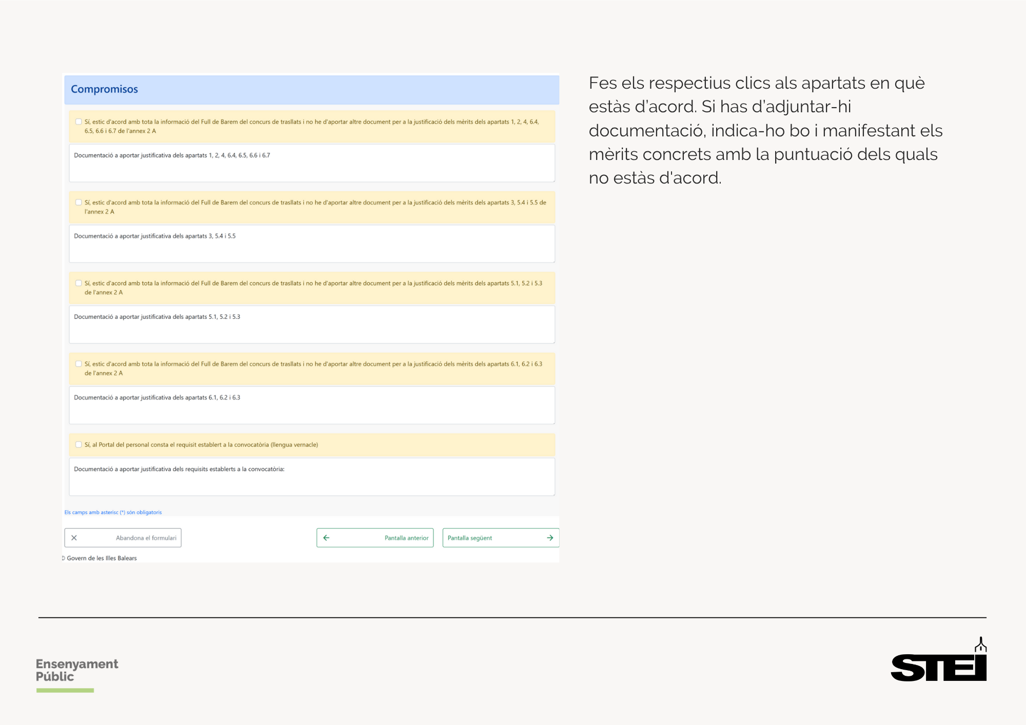 En el concurs de trasllats, em marca uns compromisos. Els he d’assenyalar?
