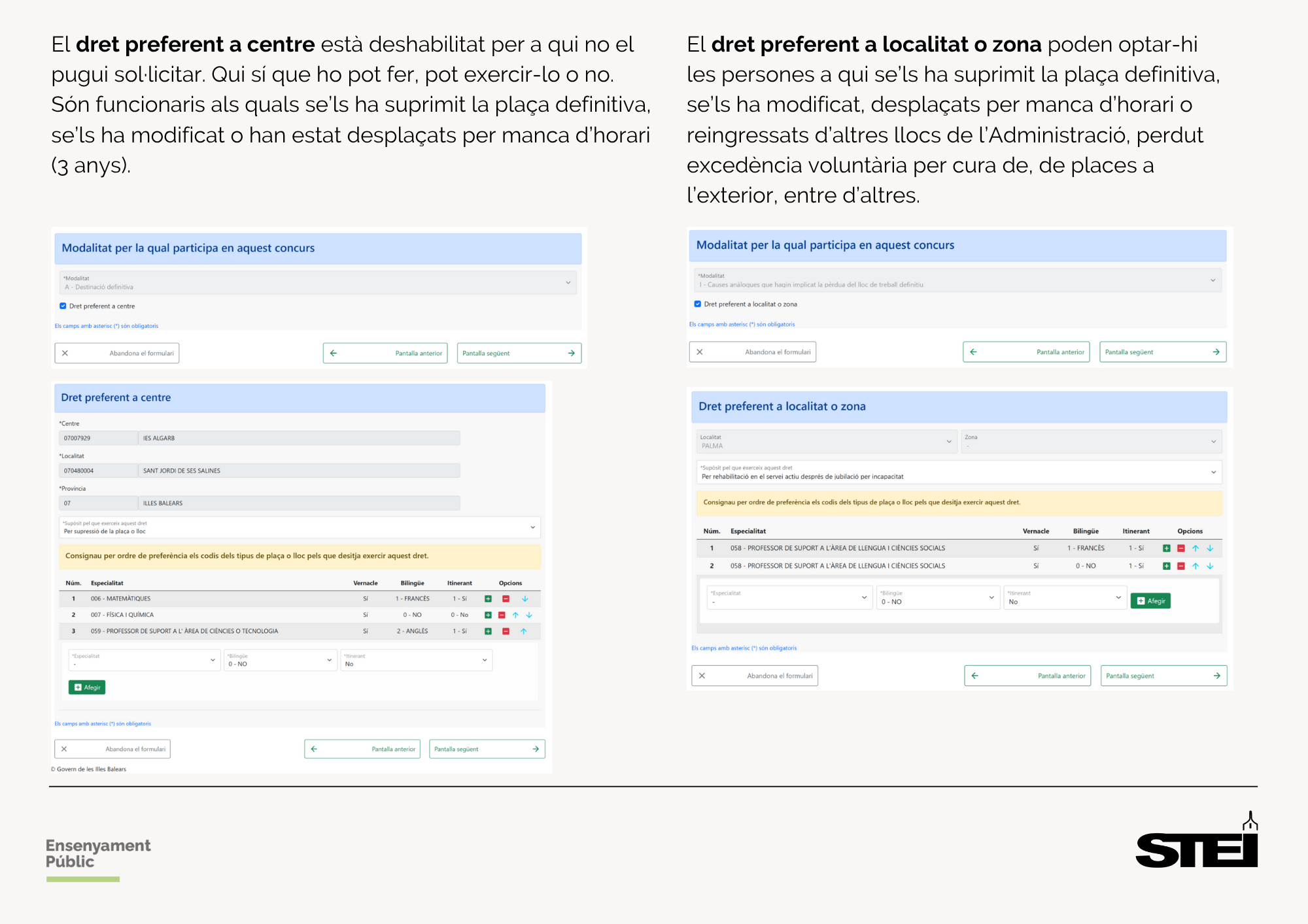 Si sóc suprimit tenc dret preferent a centre? I a localitat?
