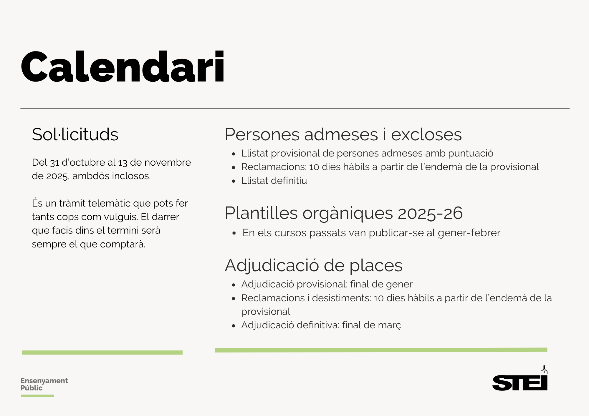 - Només es valoren els mèrits completats o reconeguts abans de la data de finalització del termini de presentació de les sol·licituds.